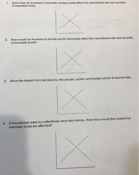 Suppose you think of the initial loanable funds curve as the supply of private savings equation that you are given. Increased demand for loanable funds pushes interest rates up, while an increased supply of loanable funds pushes rates lower. Since an increase in the real interest rate makes households and firms want to place more money in the bank. By showing how gains from trade between lenders and borrowers are. Show the impact of a decision by the private, public, and foreign sector to borrow less.